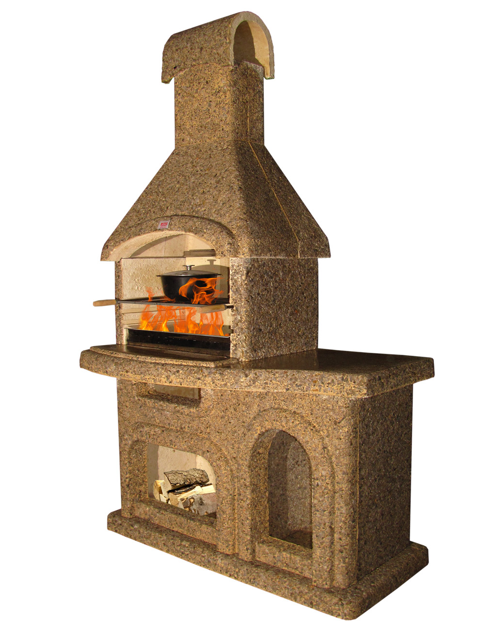 Використання каміна актуальне для прибудинкової території. Використання армованого бетону забезпечує стійкість до будь-яких проявів фізичного впливу, без найменшого шкоди для себе. Витяжка для каміна виготовляється з аналогічного матеріалу, що дає змогу конструкції мати монолітний вигляд і не доводиться підбирати її самостійно: